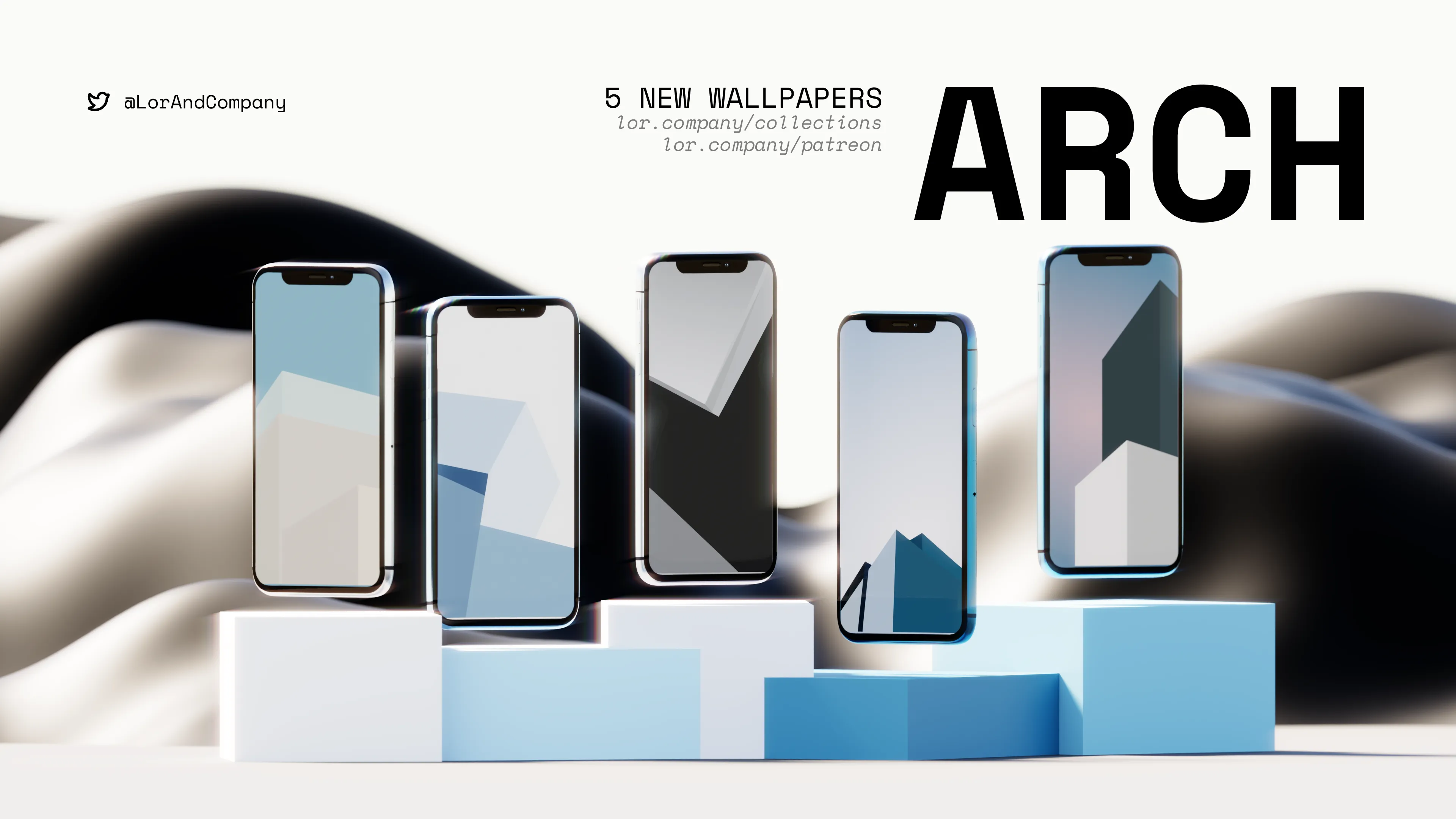 The marketing materials are designed in alignment with Lor and Company’s brand identity, utilizing the Space Mono font and a monochromatic color palette to minimize cognitive strain and enhance user focus on the wallpapers and interface elements. The graphics were created in Blender and integrated into the final marketing assets through Figma.